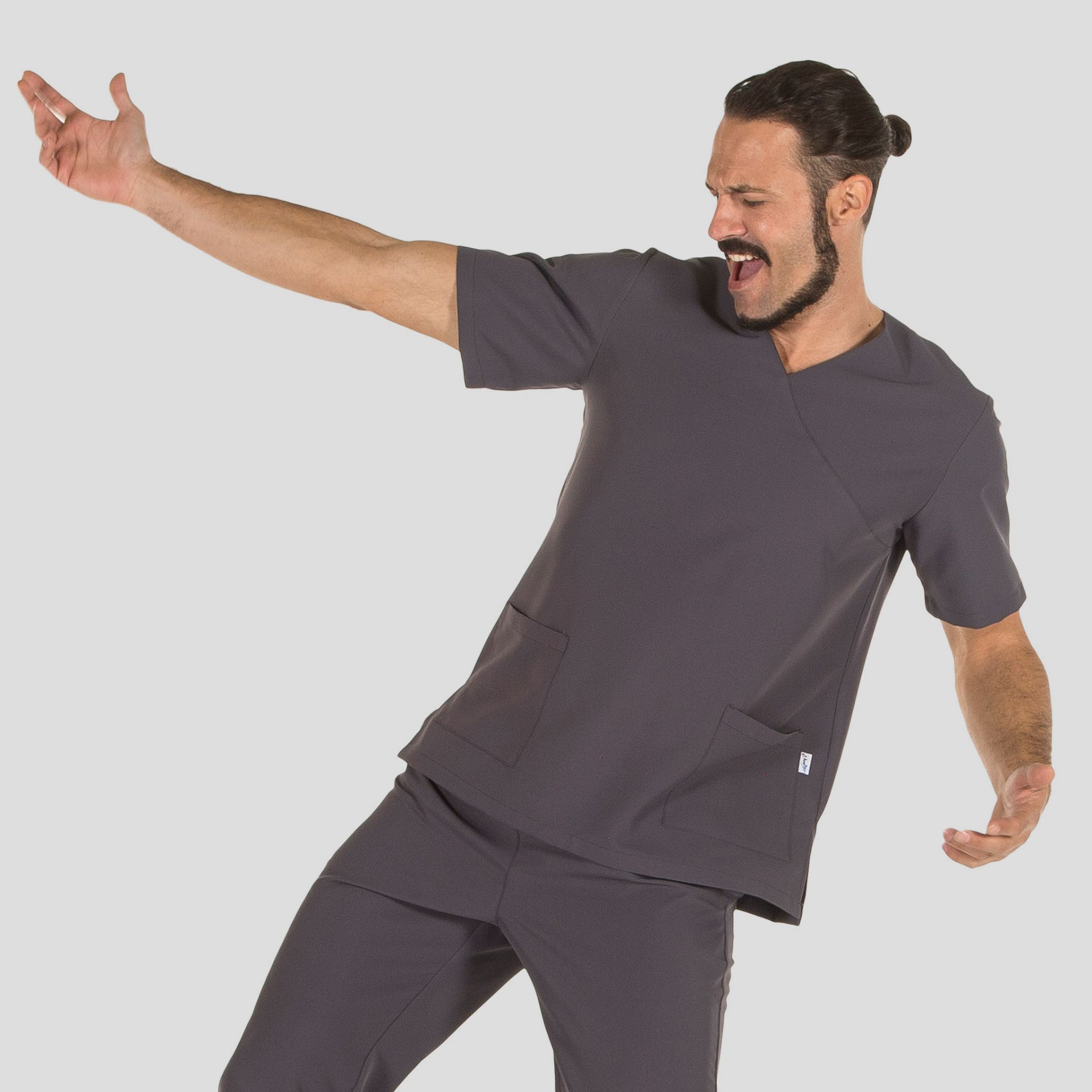 Casaca unisex en manga corta, con cuello pico y dos bolsillos de parche delanteros. Modelo semi ajustado, con aberturas laterales. Confeccionada en MICROFIBRA de 100% Poliéster, un tejido antibacterias, altamente transpirable, tolerante a salpicaduras de lejía, lavable a 90º, de rápido secado, sin necesidad de planchado y repelente al cabello y pelo de mascotas. Ideal como uniforme para enfermería, doctores y demás profesionales sanitarios en hospitales, clínicas y centros médicos, laboratorio, farmacia, veterinario, limpieza, peluquería, estética o comercio.