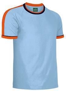 100% algodón ring spun 185 grs/m2 punto liso Tinte reactivo azo-free Cuello doble Bandas en hombros entrecortadas Manga corta ranglán Manga corta con puño y vivos Doble pespunte en cuello, bajo y mangas Etiqueta verde bordada