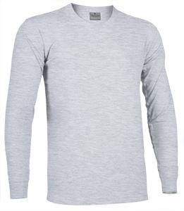 100% algodón ring spun Gris vigoré: 98% algodón, 2% viscosa natural 160 grs/m2 punto liso Tinte reactivo azo-free Cuello redondo con elastómero Manga larga con puño Refuerzo de hombro a hombro Doble pespunte en cuello y bajo Etiqueta gris bordada