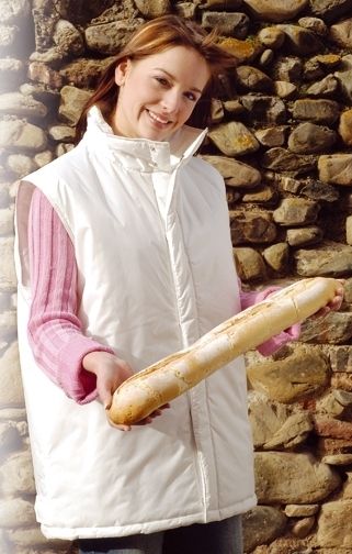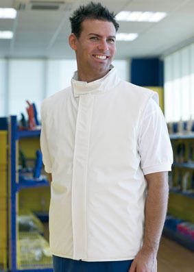 • Diseño sin bolsillos exteriores, costuras termoselladas (especial para industria alimentaria). 1 bolsillo interior. Cierre por corchetes.