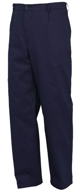 CE RIESGOS MÍNIMOS En 100% afelpado, gramaje 350 gr./m. Bolsillos delanteros de corte oblicuo, bolsillo trasero con botón y bolsillo porta-metro. Tallas: S – M – L – XL – XXL Color: Azul