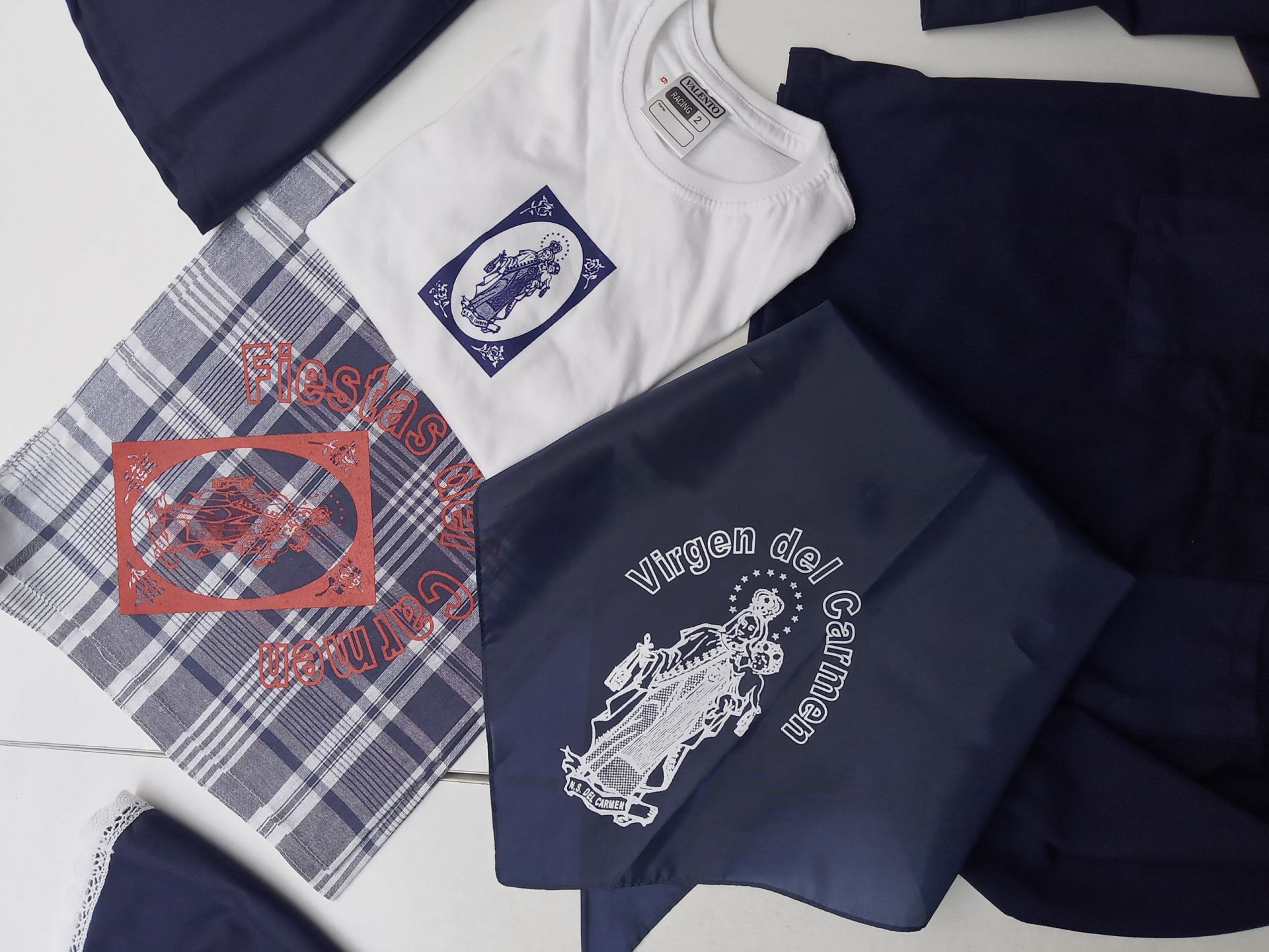 Cuadrados con cuadros azules con logo de la Virgen en serigrafia ( 100% algodon)